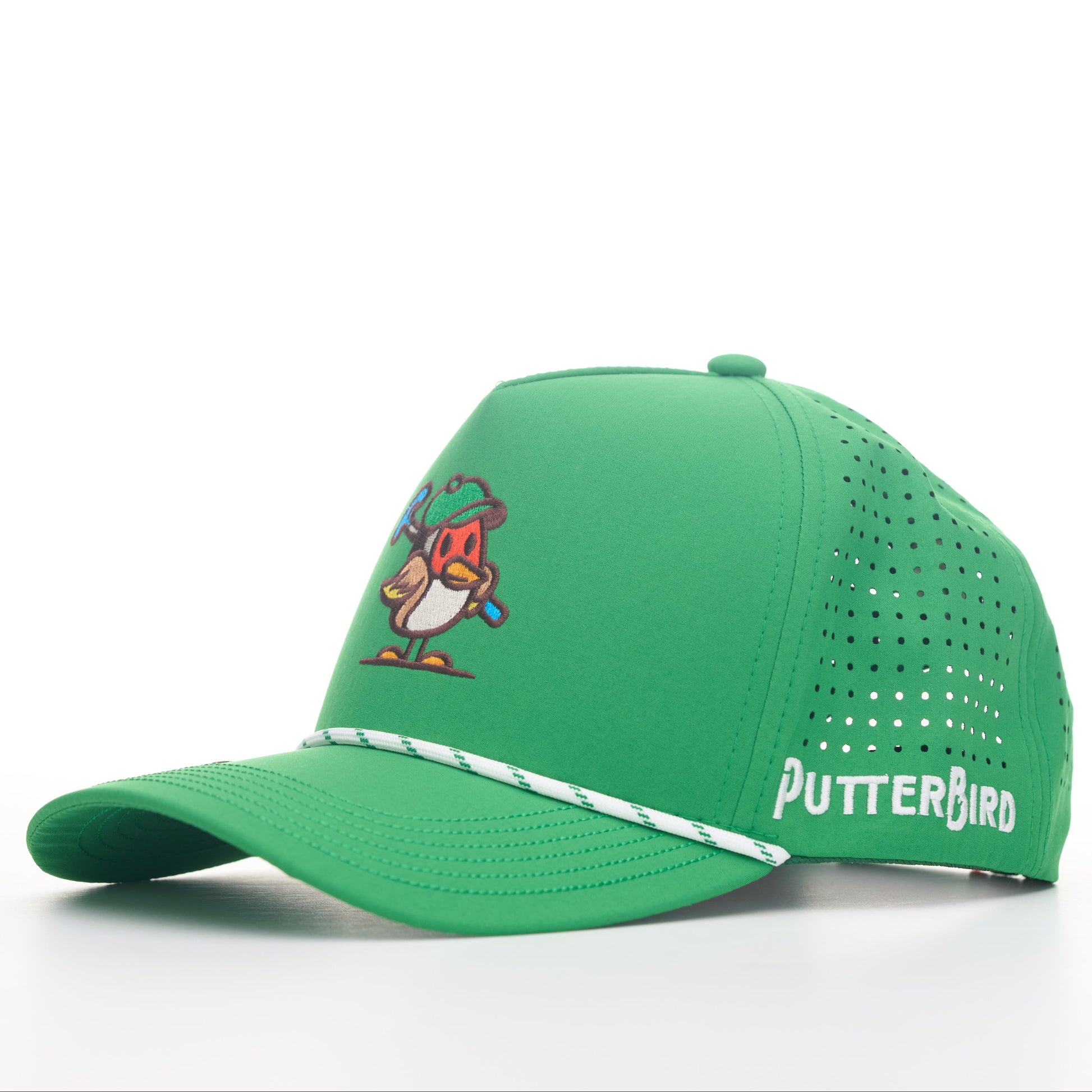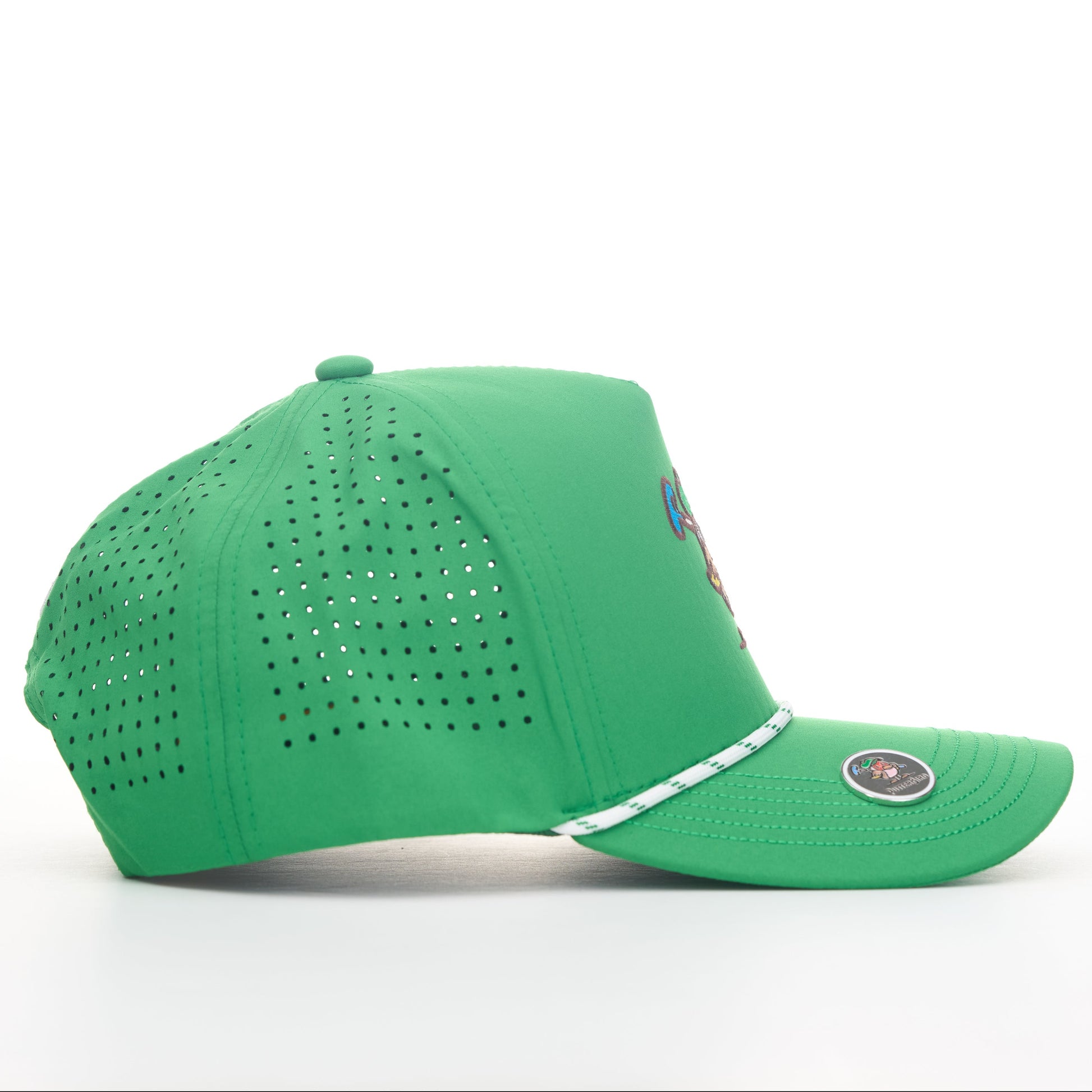 Colorway: Green top | Green bill (Green under bill) | White rope w/ green fleck | White embroidery